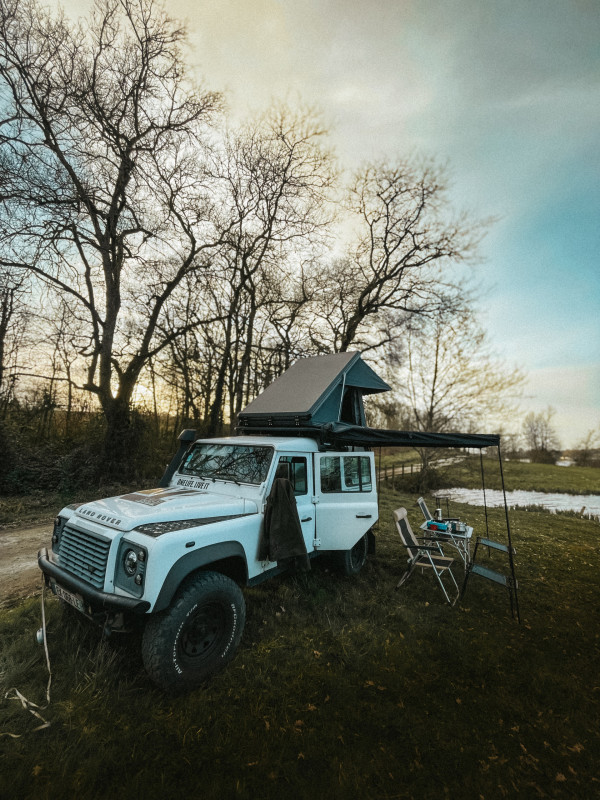 Le véhicule dispose alors de deux à trois couchage dans la tente de toit, une tente 2 places supplémentaire peut être fournie avec le véhicule ou bien un lit de camp double pour les plus courageux/ pour les beaux jours à la belle étoile.