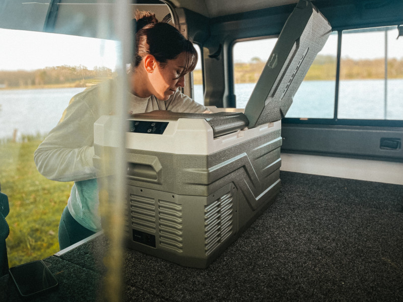 Son alimentation électrique est soutenue par 2 batteries couplées/séparées et le frigo quant à lui dispose de son propre système de protection de batterie. (L'autonomie est largement suffisante pour une nuit de bivouac).