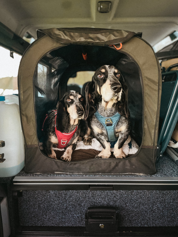 Le 4x4 est largement dog friendly ! Il peut être ainsi prêté une cage pliante tous conforts pour chiens pour les transports et pour la nuit, elle rentre parfaitement sur le plateau coulissant du tiroir benne.