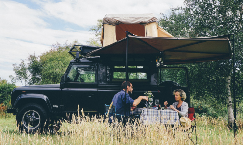 Du côté passager et à l'arrière, un auvent en forme d'aile de chauve-souris à 270 degrés étend la couverture et l'ombre pour entourer les 3 côtés du véhicule, ce qui signifie que l'accès à l'avant et à l'arrière peut être protégé des éléments et offre un espace ombragé spacieux pour cuisiner. et détendre!