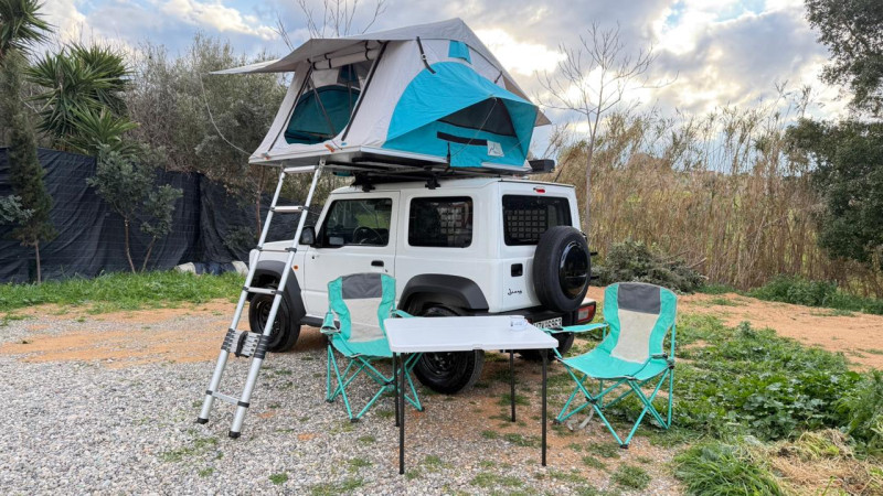 Explorez la Crète en toute liberté en louant notre Suzuki Jimny équipé d’une tente de toit !