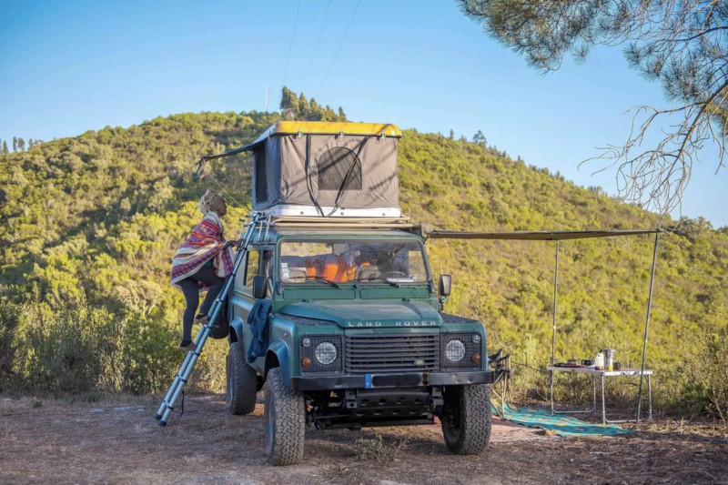 Louez une légende, un Land Rover Defender Td5 110 au Portugal. C'est la voiture idéale pour vous offrir une aventure romantique, la traction 4x4 permanente vous permet de voyager confortablement sur route et hors route, 3 sièges, 3 couchages, 2 matelas pneumatiques, sac de couchage pour dormir à l'extérieur, Grand et petits oreillers, parfaits pour les couples avec un enfant.