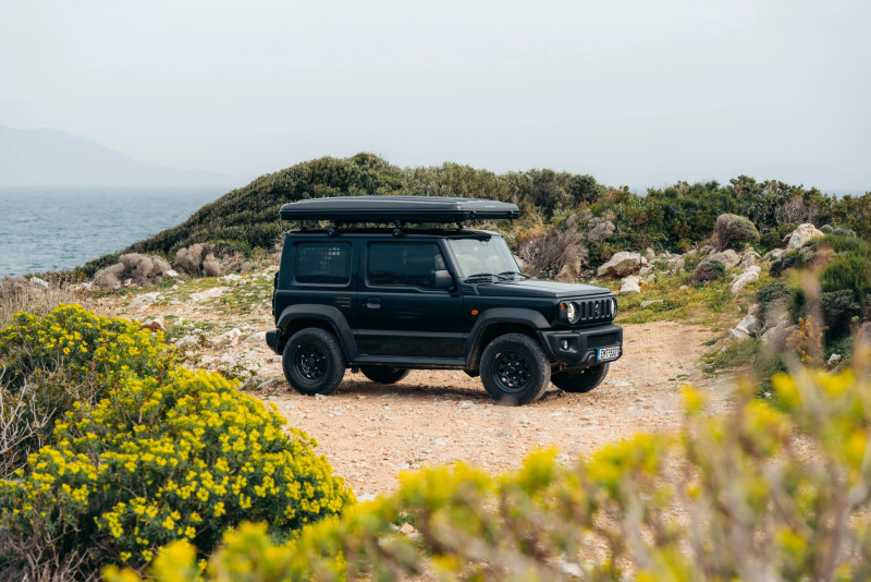 Le Jimny Black est conçu pour conquérir aussi bien les sentiers montagneux que les routes côtières. Son nom s’inspire de la beauté brute de la Crète, mais il est prêt à vous accompagner partout en Grèce, des îles aux hauts plateaux recul��s.